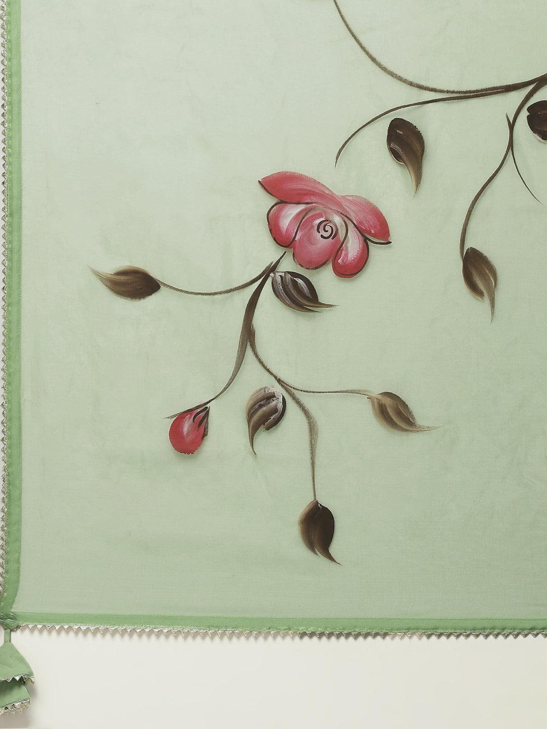 Light Green Hand Painted Floral Anarkali Kurta Pant Set With Dupatta