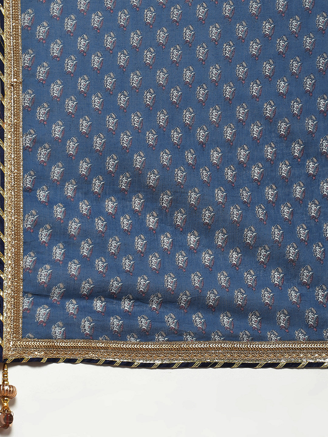 Women Maroon & Blue Anarkali Kurta Sharara Set With Dupatta