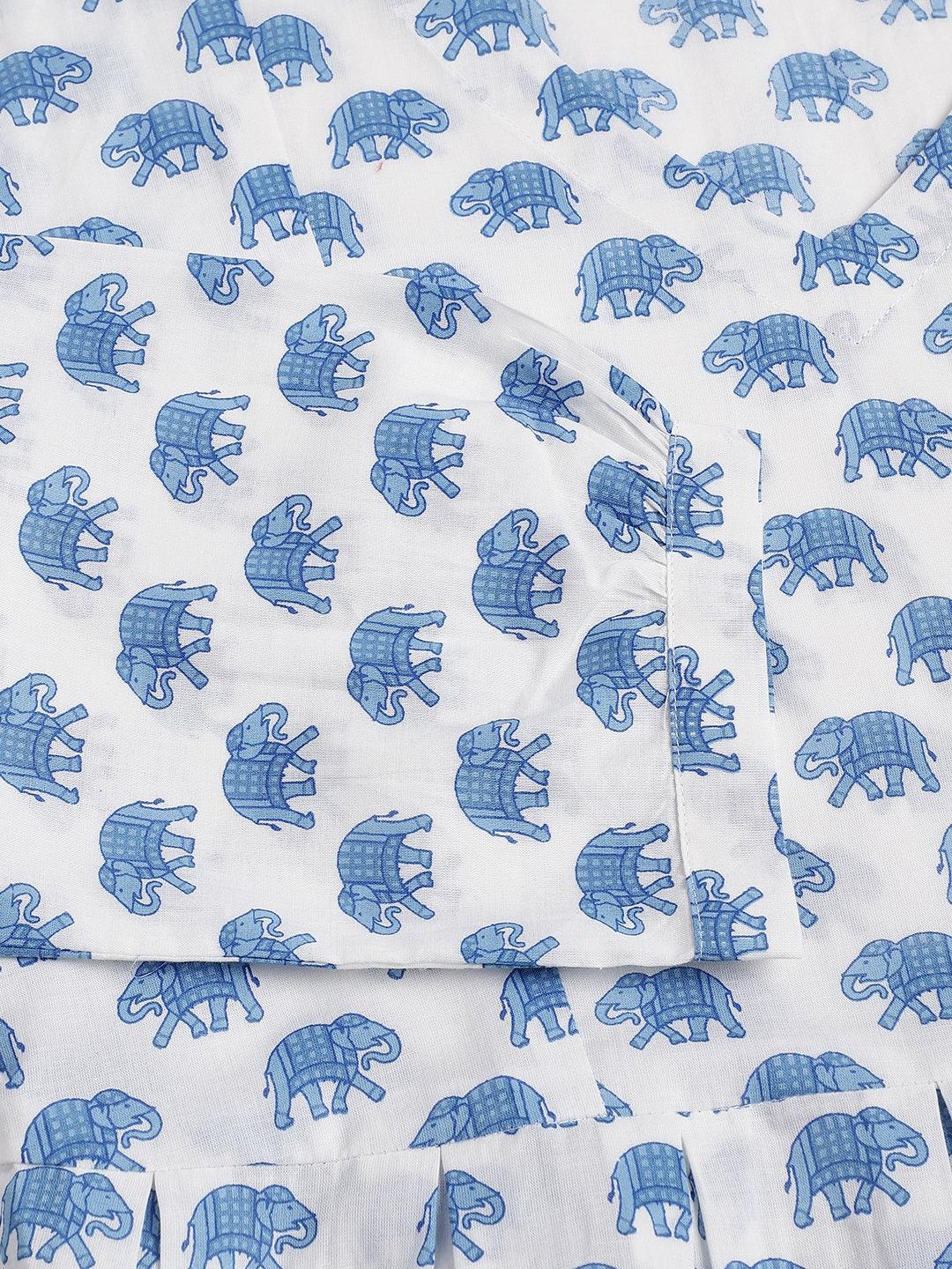 White Animal Printed Cotton Peplum Top Pant Co-Ords Sets