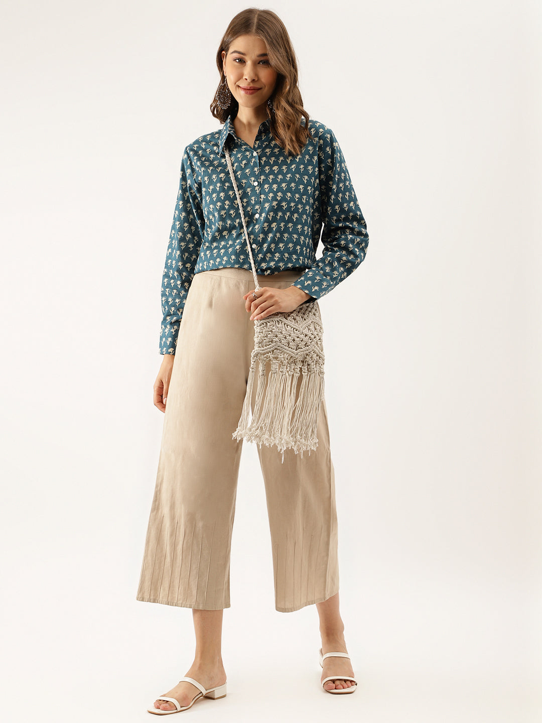 Turquoise Blue Ethnic Motif Printed Casual Women Shirts